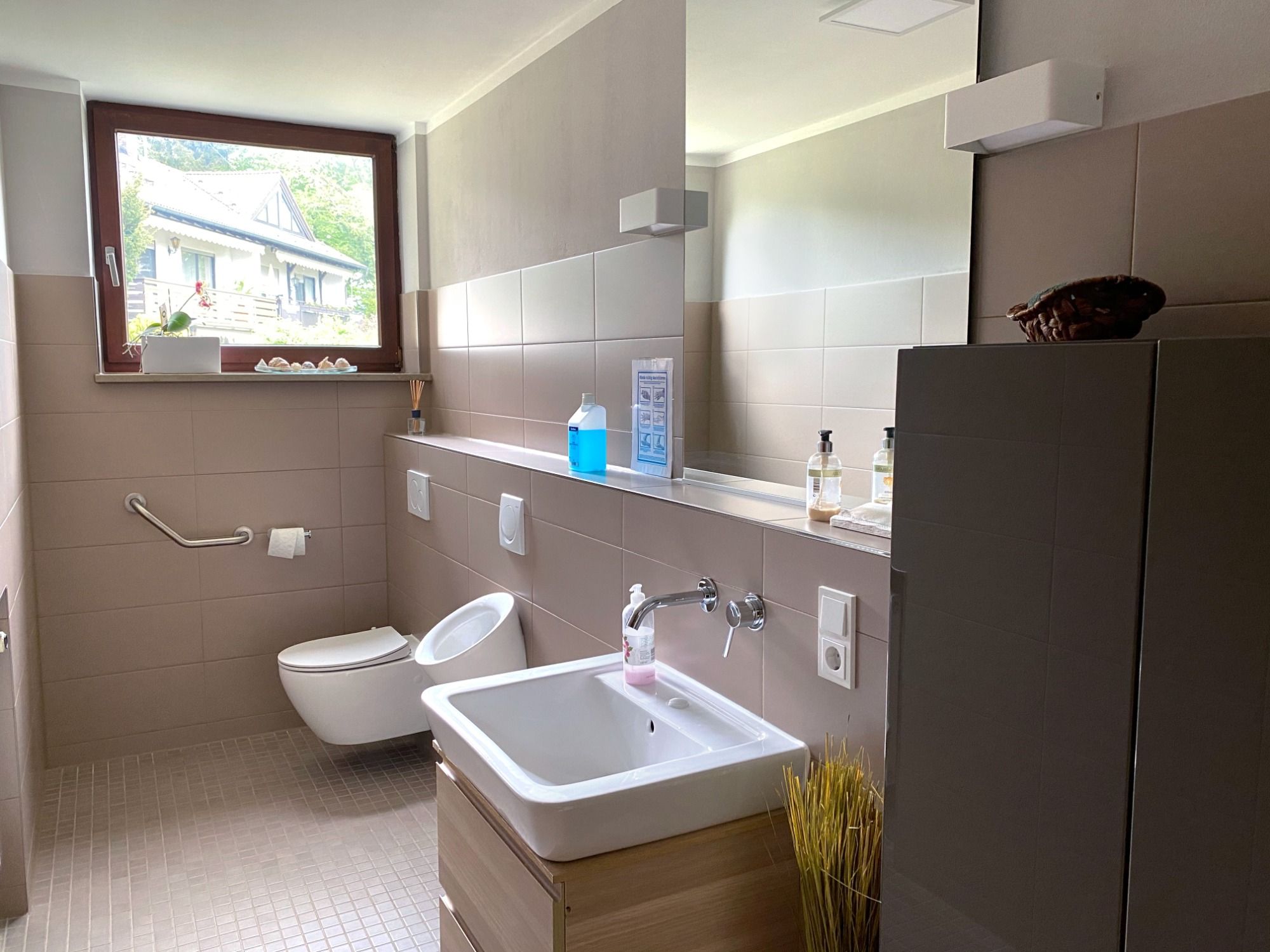 Die bodengleichen Fenster gewähren nicht nur Ausblick, sondern auch den Zugang zum großen Garten. Über die Terrassentür gelangt man auf die Terrasse, die zum frische Luft schnappen und Sonne tanken einlädt. Von hier aus lässt sich der Blick auf den großen Garten genießen. Die Tischgruppen bieten reichlich Platz für „Kaffee und Kuchen“, Kartenspiele oder jede andere Art von Aktivität bei schönem Wetter. Der Garten bietet genug Platz für kleine Spaziergänge zur Aktivierung des Bewegungsapparates. Rückenfreundliche Hochbeete bieten eine ideale Freizeitbeschäftigung für unsere Gäste mit grünem Daumen und können nach Lust und Laune bepflanzt werden.
